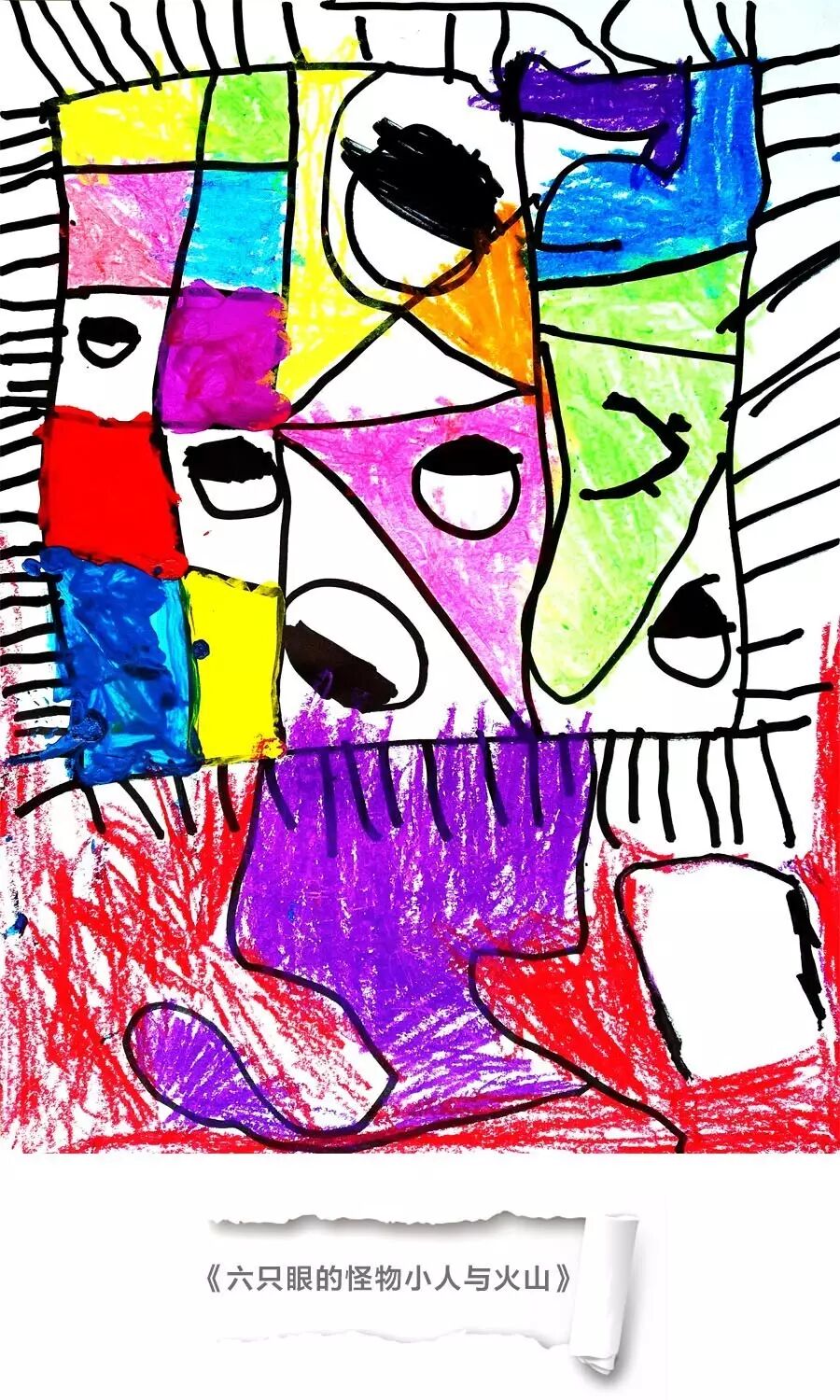 有一个怪物小人长着六只眼睛,它的脑袋方方的像积木一样,就连下巴上都长着头发哈哈,怪物小人现在正在玩他的火山玩具呢!