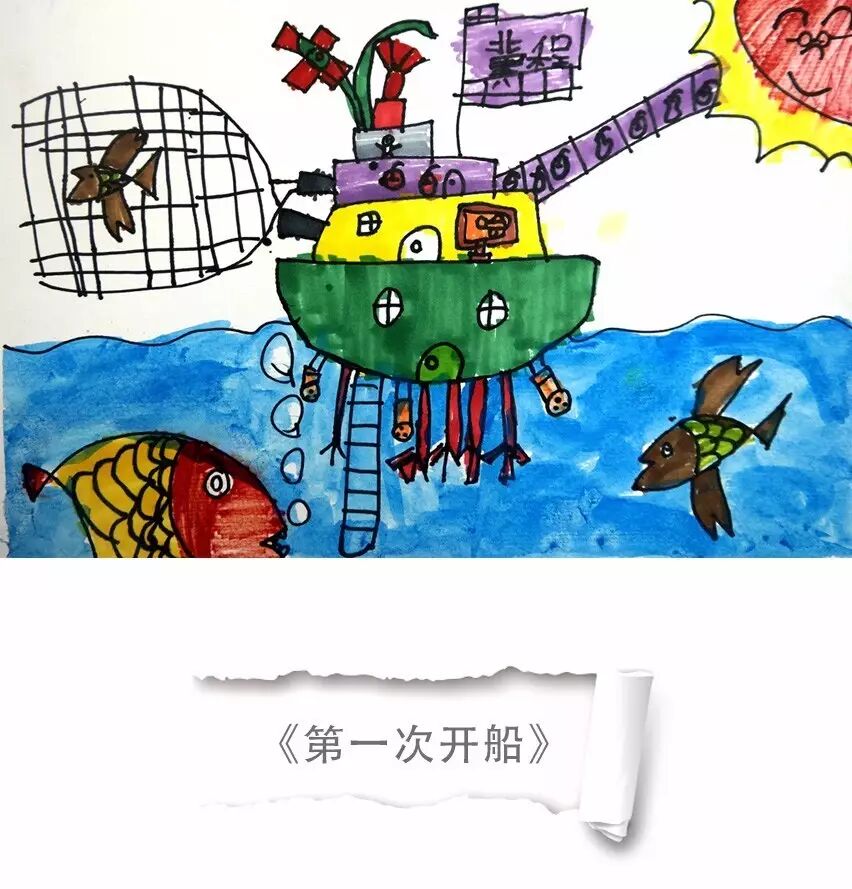 这幅作品将我们带入到apple的奇幻世界里。在这个世界里,apple开着自己设计的船,在海洋中遨游。这艘大船还有很多神奇的功能,这艘船可以在天空飞翔,还可以在大地上奔跑,带有很强的机器元素,给我们一种奇幻的未来科技感。孩子很好的用线来表现结构,用成熟的色彩,向我们展开了一幅壮丽的海洋遨游的景色。