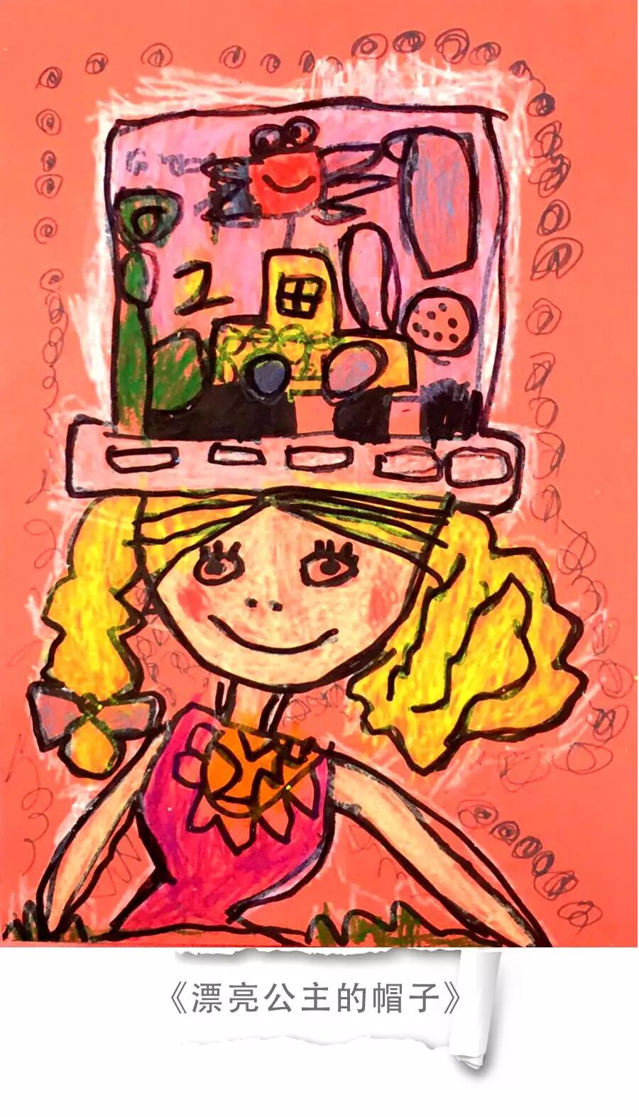今天看了动画片《小红帽》喜欢公主的多多为小公主设计了一顶漂亮又神奇的小帽子!帽檐是一条马路变成的,马路上是一个黄色的车顶有一个螃蟹热气球的小汽车,非常可爱。多多公主的造型也很有进步哦,小公主的麻花辫和蕾丝小衣领设计的非常棒!