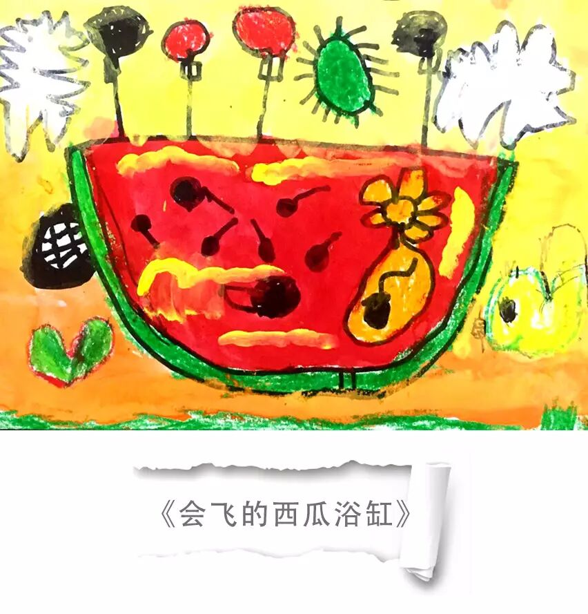 多多的西瓜变成了一个漂亮的西瓜鱼缸,一颗颗西瓜籽变成了在鱼缸里自由自在游泳的小蝌蚪。鱼缸上面还飘着热气球,正带着小蝌蚪去环游世界呢!