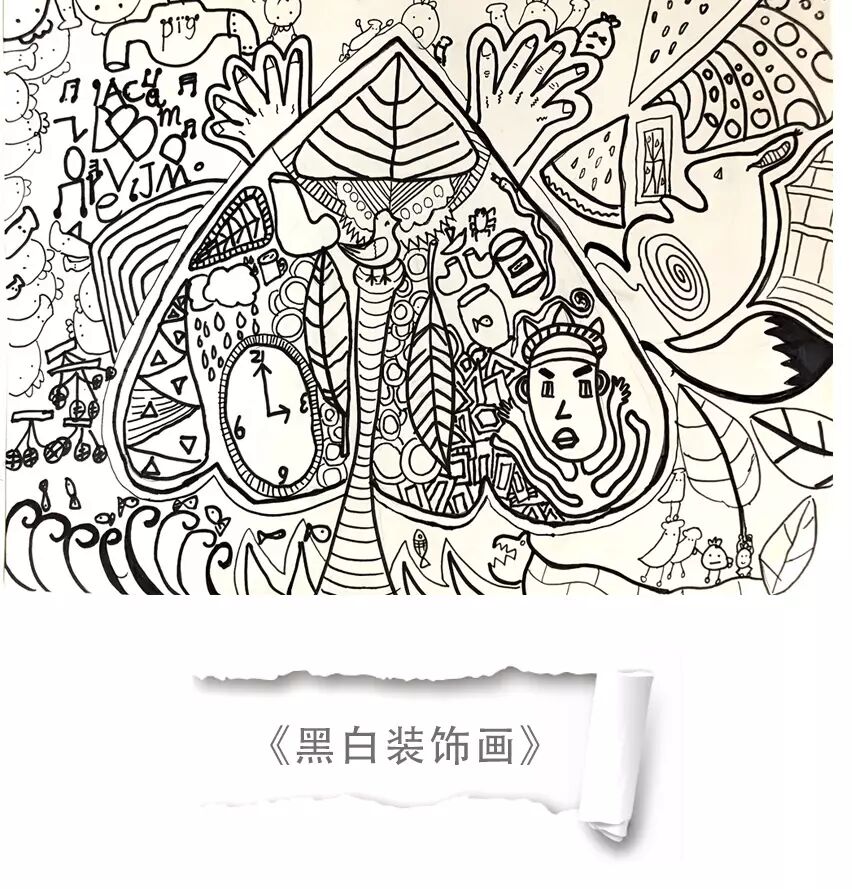 用不同元素进行堆积,让每一个图案如同拼图一般组织在一起,这幅画让我们重新认识了秩序,里面藏着太多太多孩子的奇思妙想。比如右下角的水滴小人和变化后的自由女神,请大家慢慢品味吧!