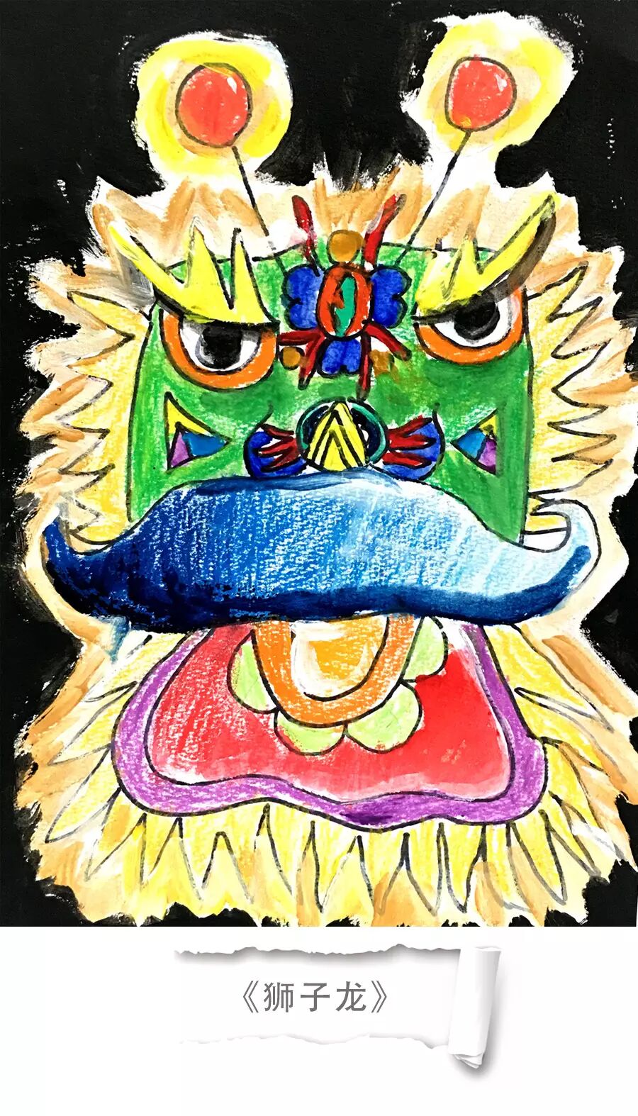 原本是传统舞狮的狮头却被小雨画成了龙,因此小雨给他起了个好玩的名字《狮子龙》