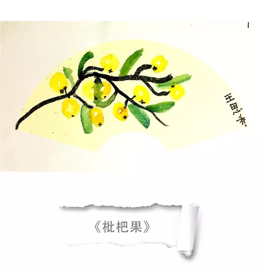 作品采用水墨国画的形式表现,整幅画面很有韵味。枇杷有大有小,颜色有深有浅,分布错落有致。叶子颜色调和准确,侧锋画叶子技法基本掌握,用笔有点紧,运笔如果能放松点就更好了。猜猜树枝是从哪面穿插出来的?这幅画让我想到一首诗:一只枇杷出画来。