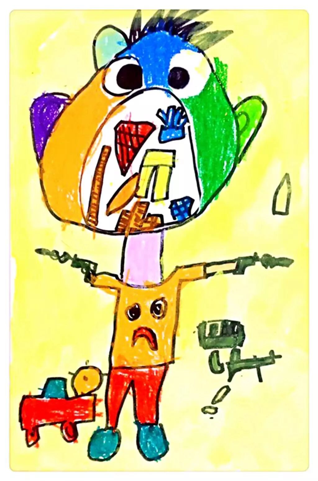 用极度夸张拟人的笔法让嘴巴的细节刻画更加细致,仿佛是蒙克1893年所做的《呐喊》。尤其皮肤中毒后的颜色,让人联想到阿凡达的皮肤颜色,充满了科幻以及神秘的气息。而手握双枪的姿势,使人联想到18至19世纪美国的西部牛仔,又或是大仲马的《三个火枪手》。