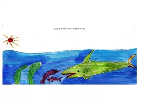 小鲨鱼每天跟着妈妈学习捕捉食物的本领。