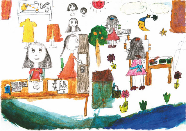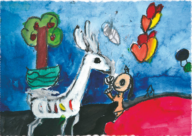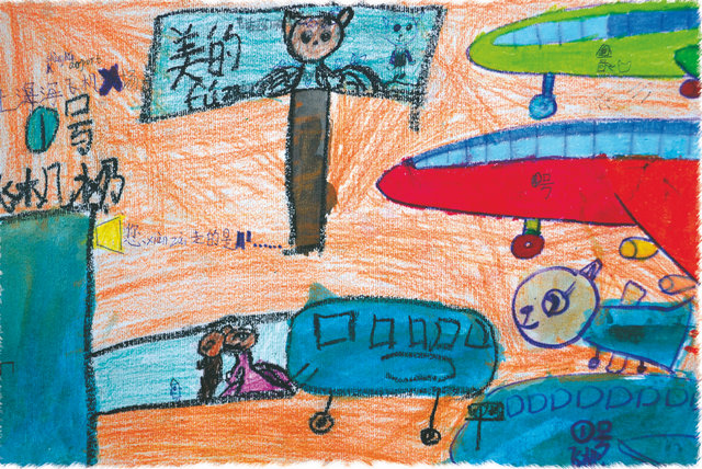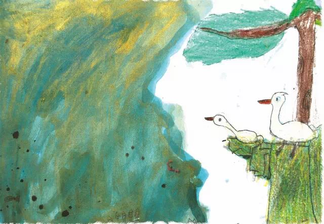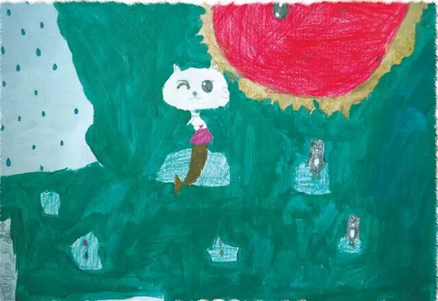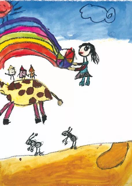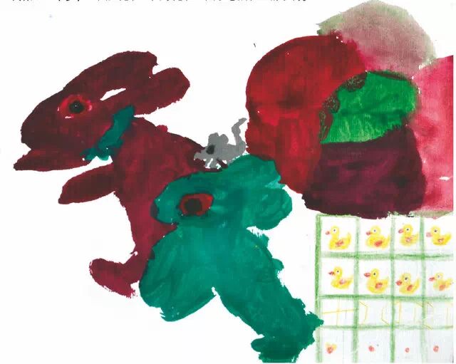 我做了一个梦,一只红兔、一只绿兔、一只小老鼠和一群小鸭。