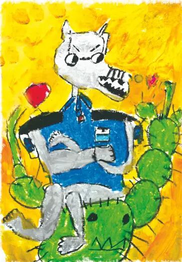 哇,哪(那)只大灰狼在欺负仙人球,也不怕扎屁股。