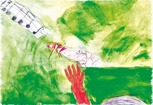 第二天醒来,我把我在集市上买的蛐蛐从笼子里拿出来,轻轻的放入草地。
