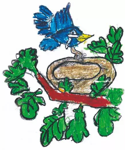 天呀!我居然看到了一只蓝色的乌鸦在巢上呱呱叫!