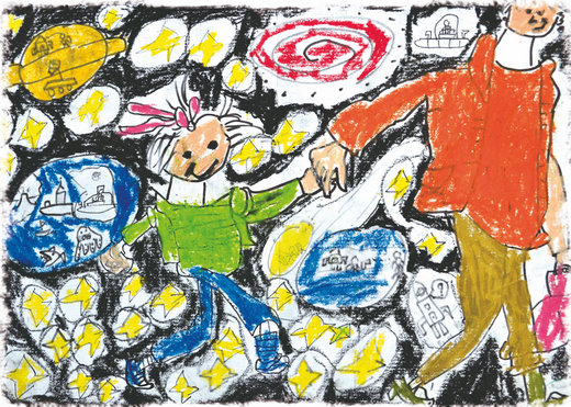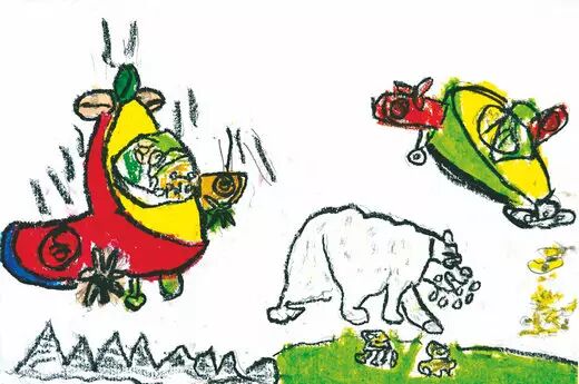 还有一只大白熊,被两个淘气的小飞机追得大汗直流。