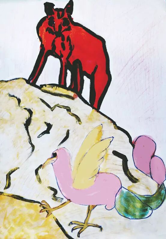 这时山谷里来了一只红狐狸,把小鸟吓走了。