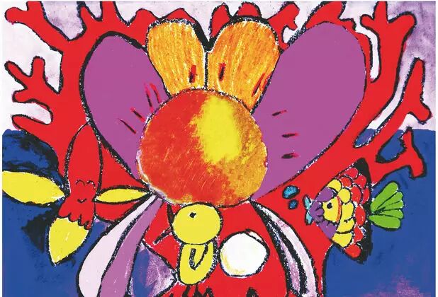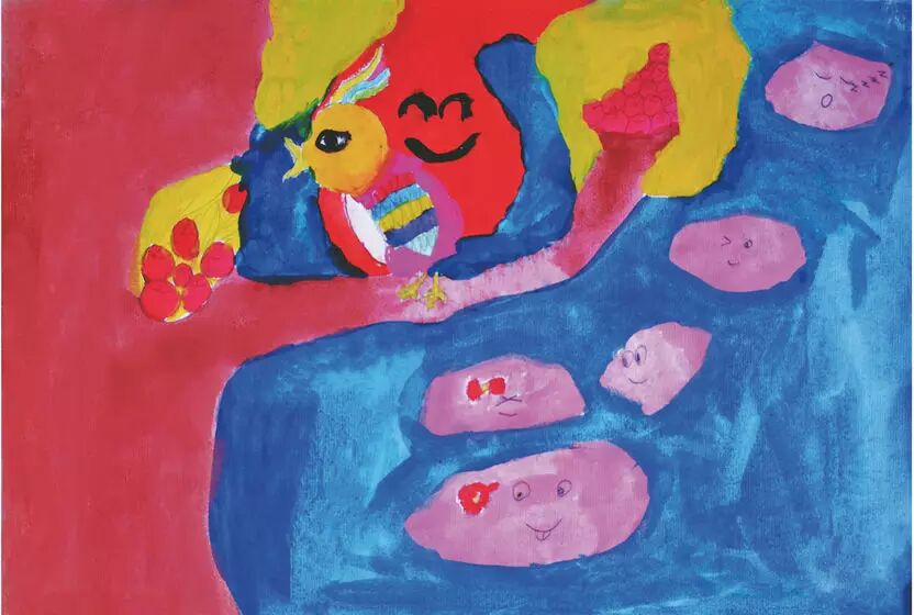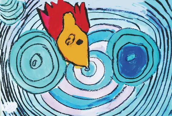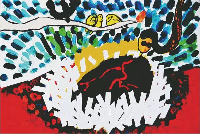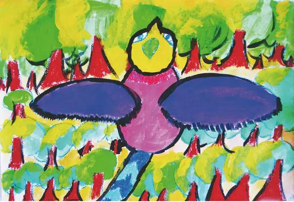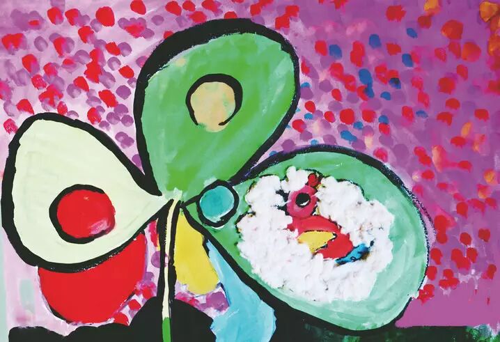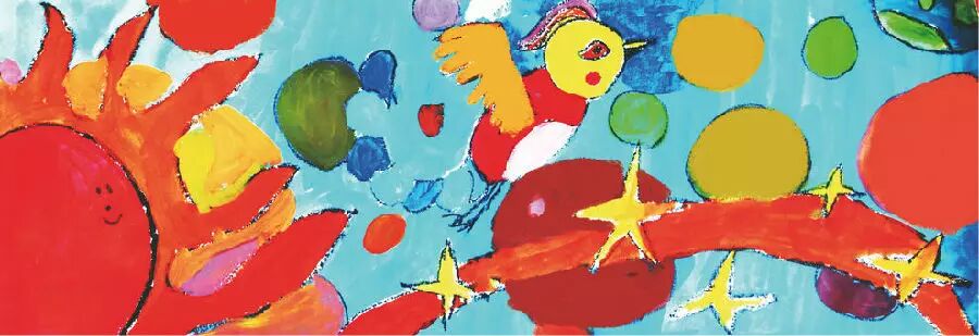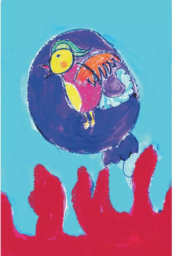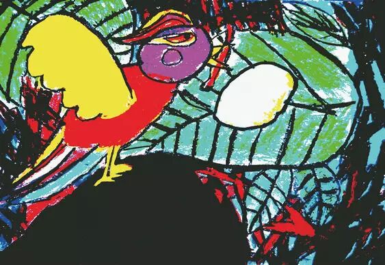 小鸟在五彩缤纷的云里出生了。