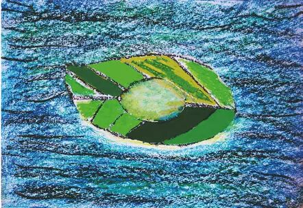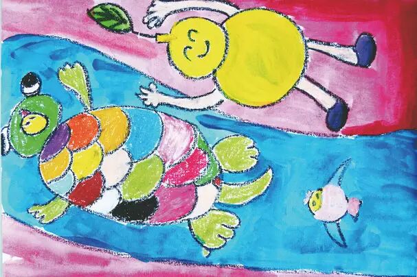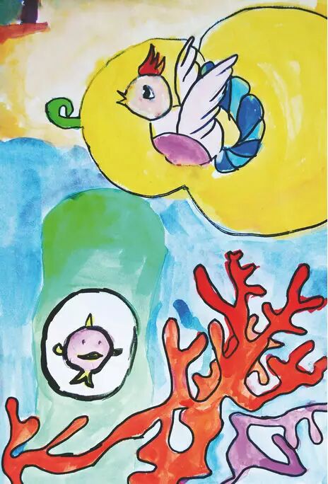 一阵风来了,蛋被一片树叶拖着飘到了海里。