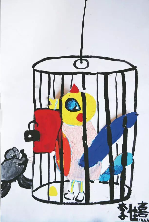 它被惊醒了,原来是一个梦,自己已经被捉住了,锁在笼子里。