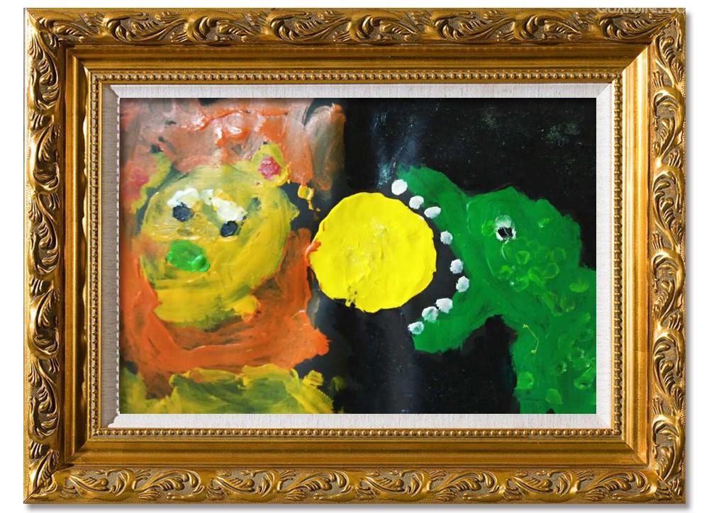 可儿小朋友刚来宝贝计画的时候只会画圆形,无法很好的掌握物体的形状,涂颜色时候也经常会把刚画好的东西都盖住。经过半年的学习,有了明显的进步,不但可以画4个人物的《西游记》了,而且用的颜色虽然多,却一点都不脏,非常明亮欢快,边界也清楚了很多,可儿自己非常开心,爸爸妈妈和老师也觉得非常欣慰。