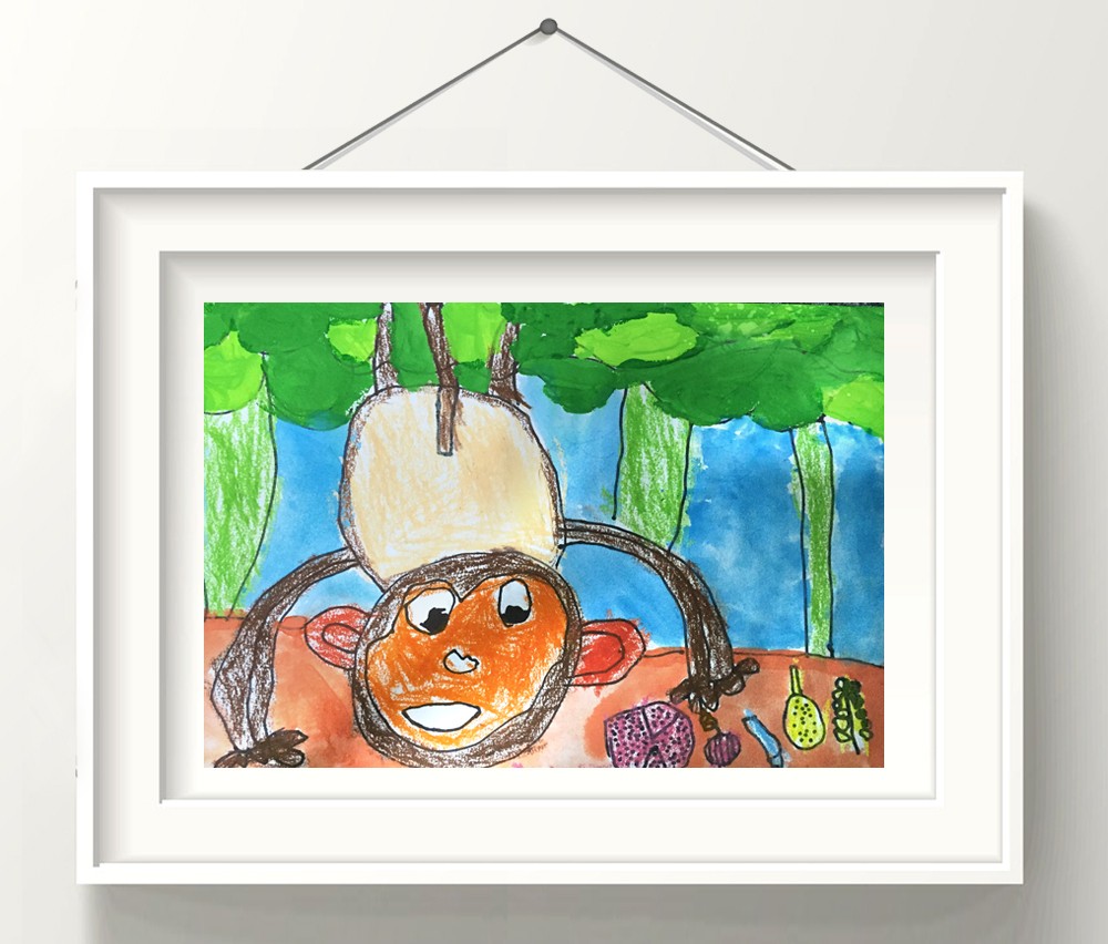 作品名称:《倒挂的小猴子》