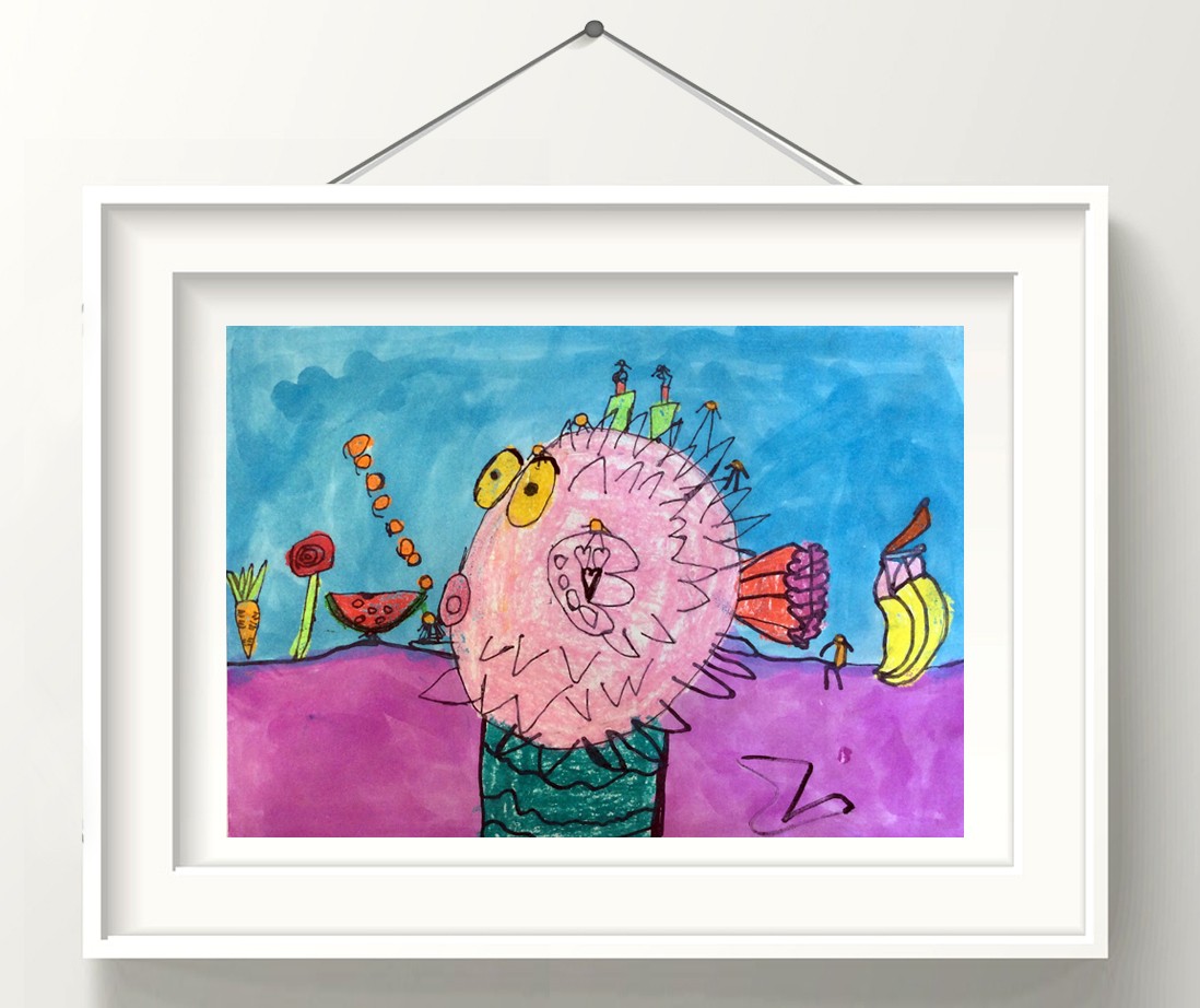 魏思迪:宝贝非常热爱绘画,在绘画中勇于表达自己的个性创意,造型丰富多样,色彩搭配鲜艳,画面中构图设计感非常好,故事情节有趣完整。