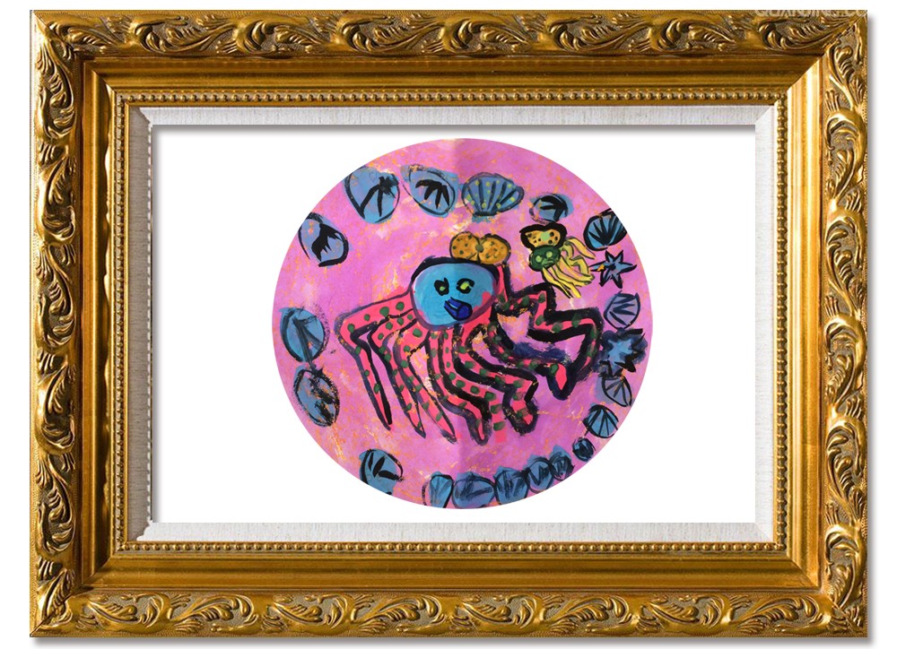 作品名称:《章鱼和贝壳在海滩上跳舞》