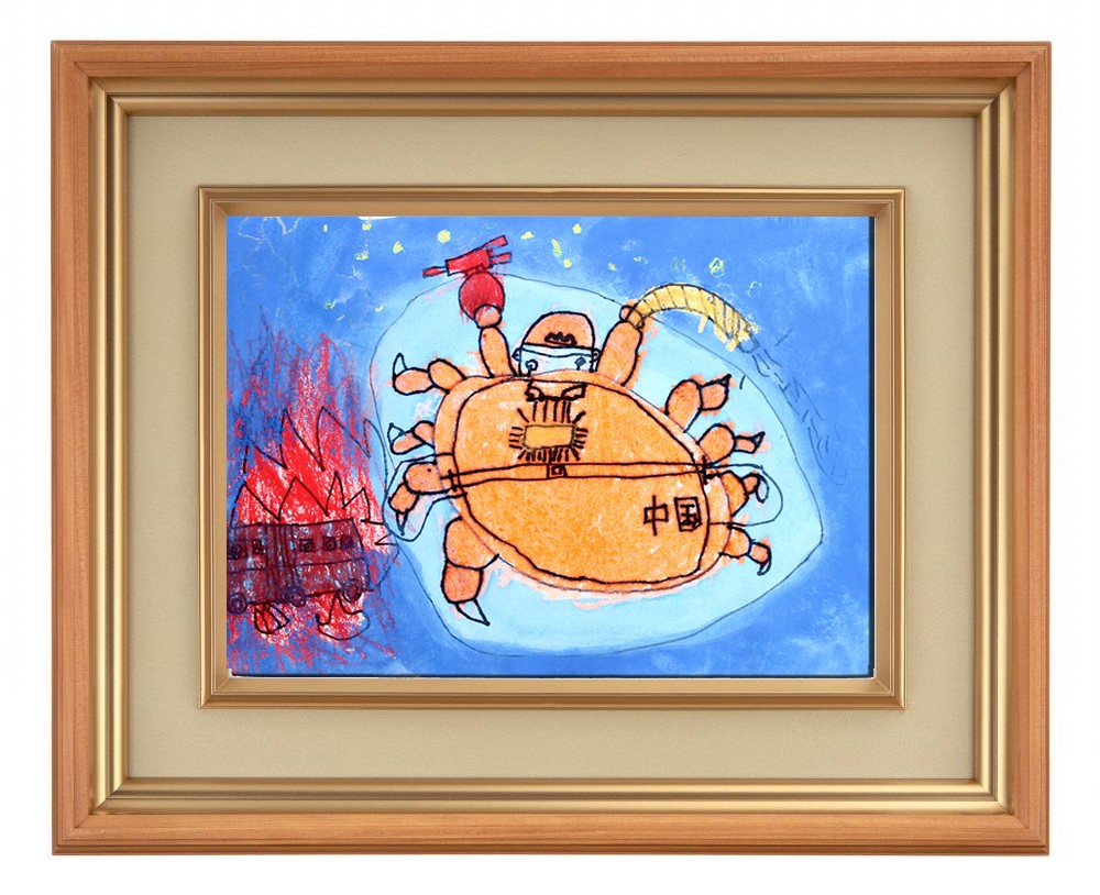 作品名称:《大怪兽站在太阳上和火箭比赛》