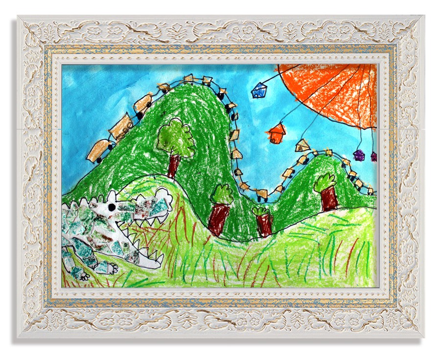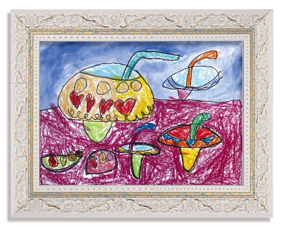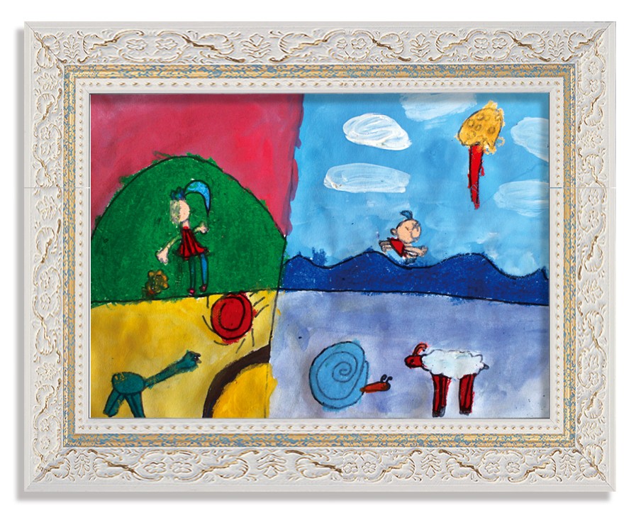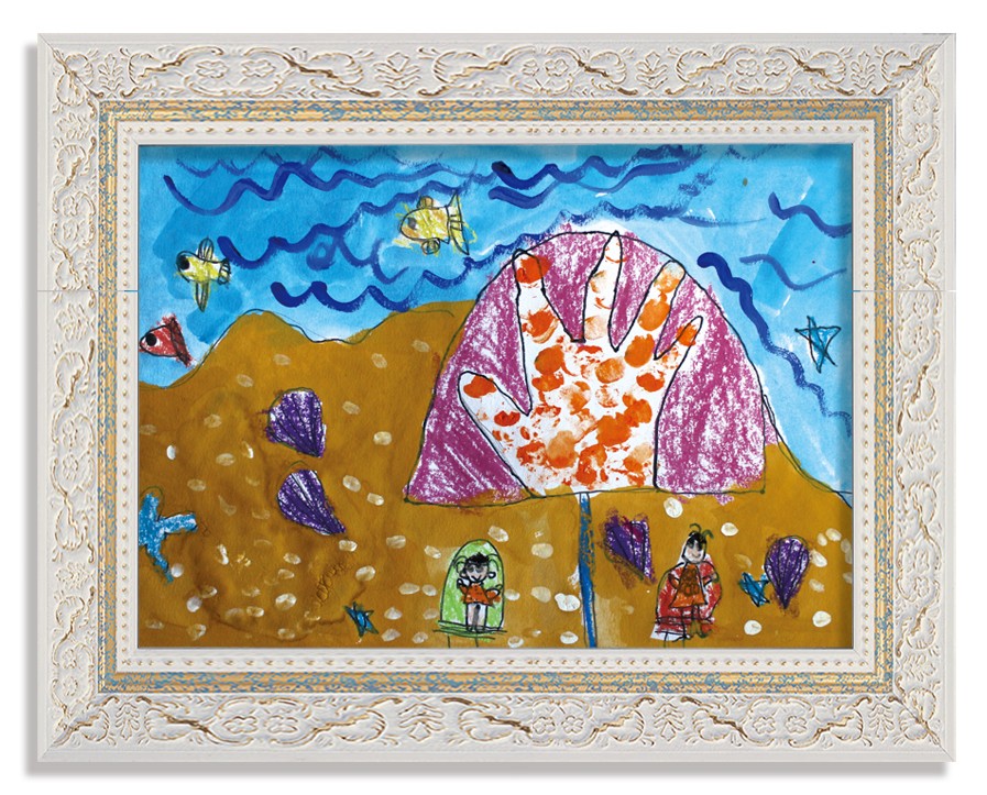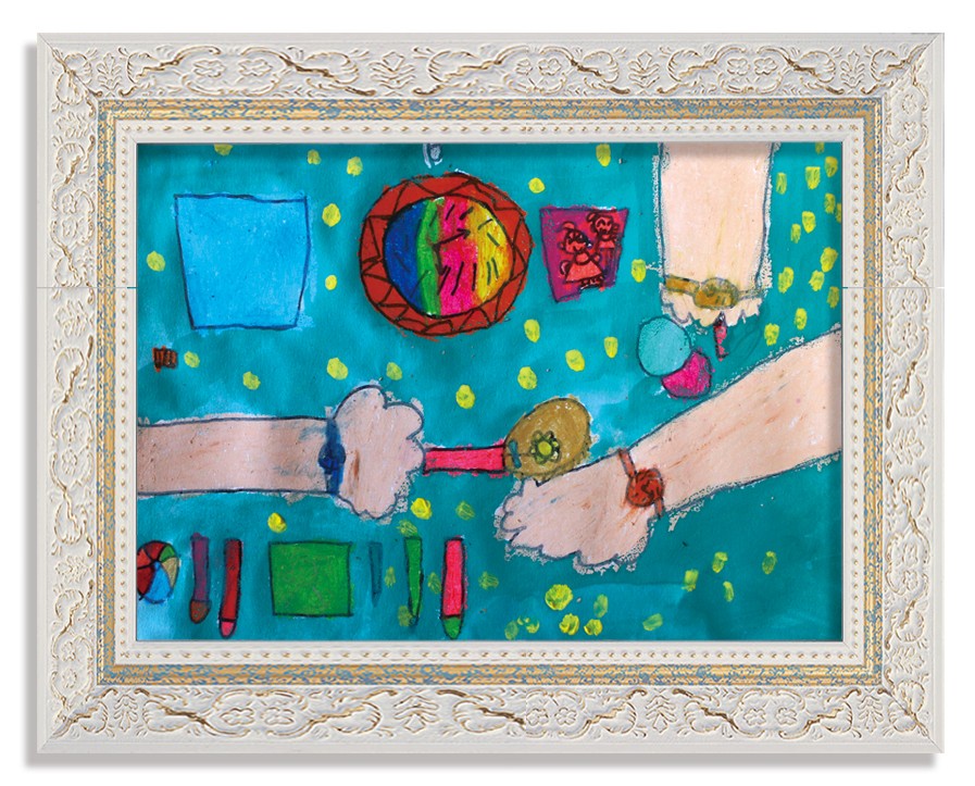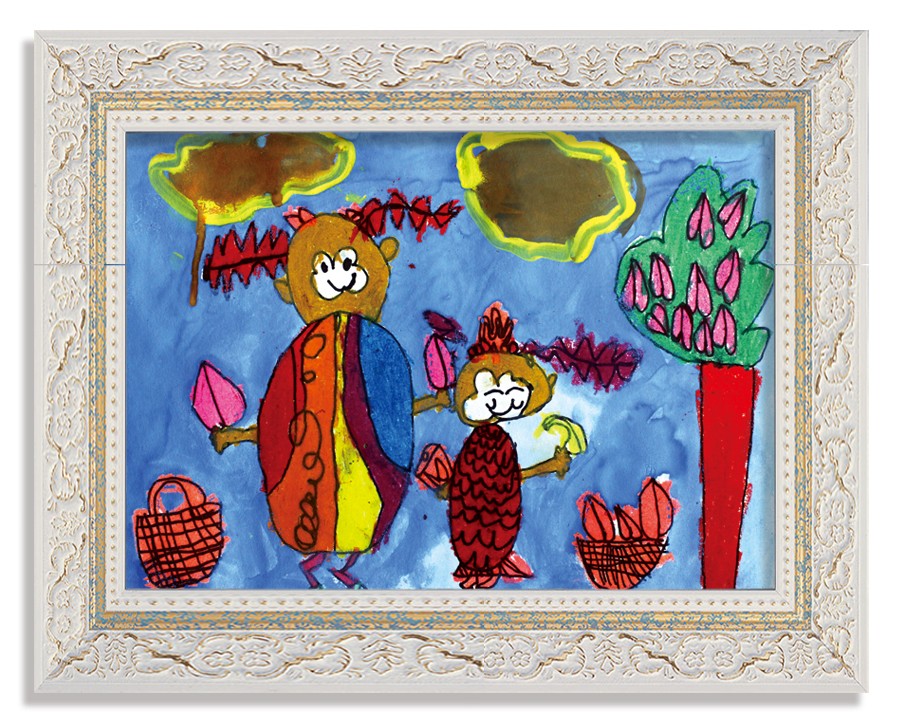 孙祎璠:小名一凡。一凡是一个心思细腻的小姑娘,每次画画都十分认真,细心,自己对画面的要求很高,刚开始学的时候画面色彩比较简单,之后画面效果越来越大胆,色彩越来越丰富,整个画面不仅丰富还有层次,背景也逐渐繁复起来,画面看上去更加饱满了。希望一凡在宝贝计画里学画画能一直坚持下去,描绘出更多自己的内心世界。