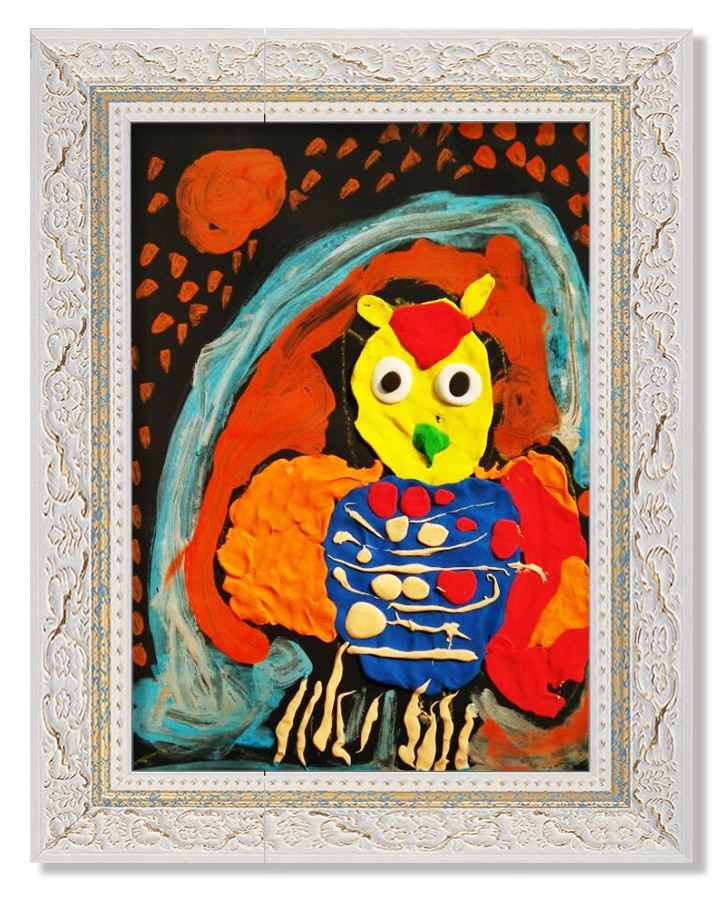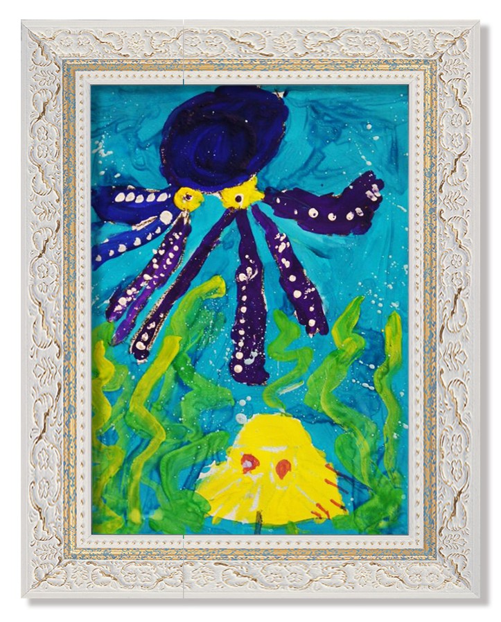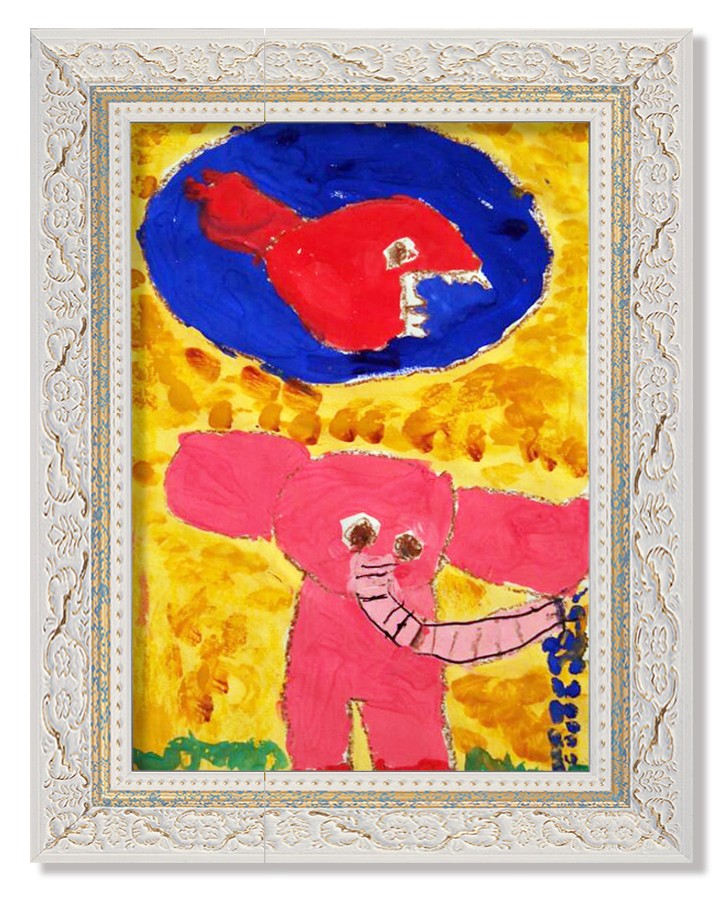 赵逸凡:小名大宝,4岁。在绘画方面很有自己的风格,喜欢用不同的色彩抒发不同的情感。课堂上专注,认真,善于思考,大胆创新,每次作品都会自己非常独特的创意,并且能够将画画和生活的兴趣结合起来,通过画画表达自己的喜怒哀乐。