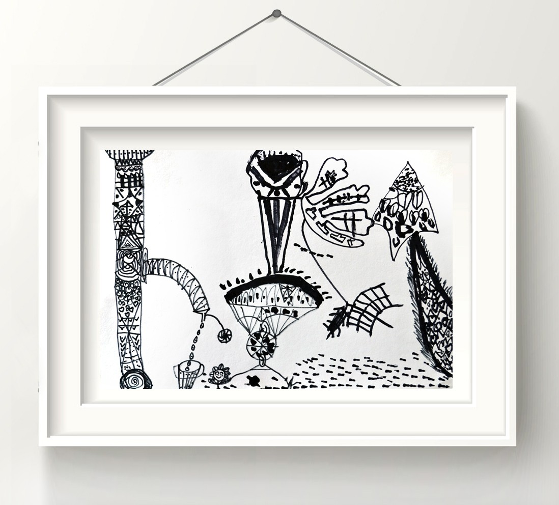 作品名称:《点线面的黑白画》