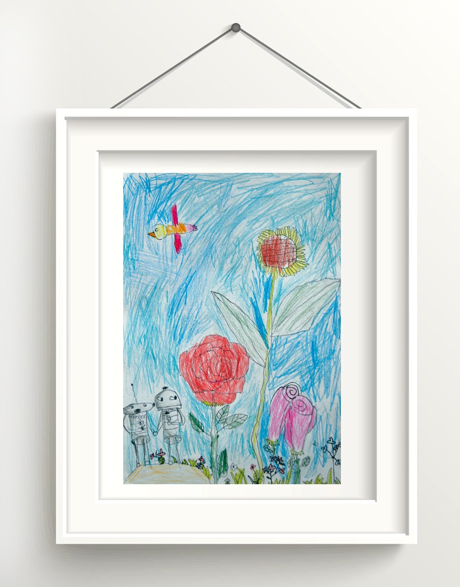 作品名称:《玫瑰下的机器情侣》