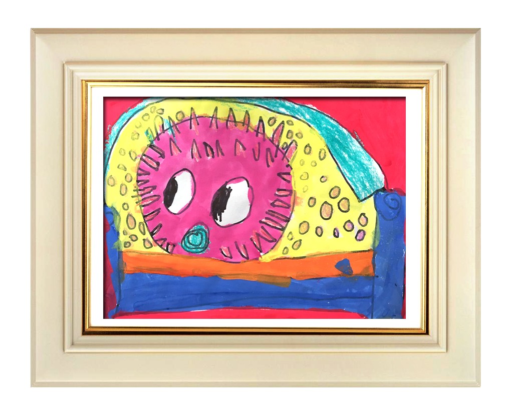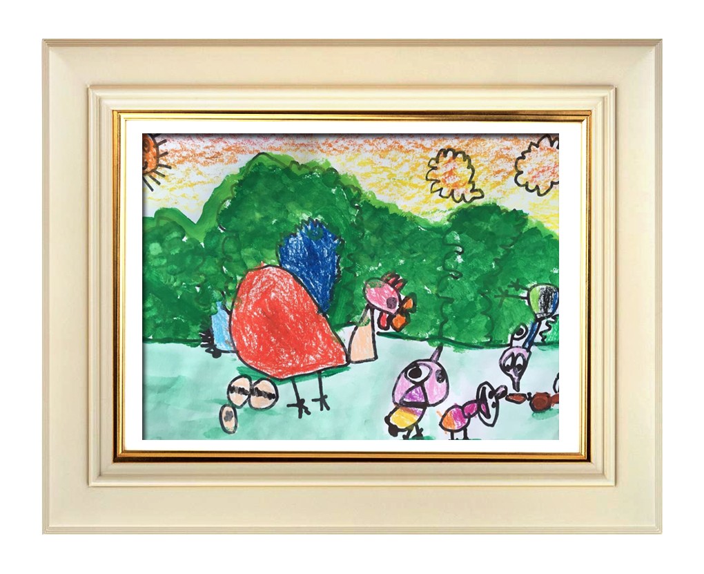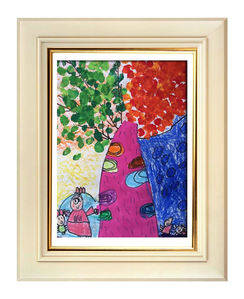 白蔚然:小名叫朵朵,是个活泼漂亮的小女孩!宝贝非常喜欢画画,在绘画中勇于表达自己的个性创意,造型丰富多样,色彩搭配鲜艳,画面中构图设计感非常好,故事情节有趣完整。