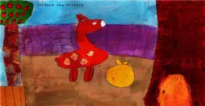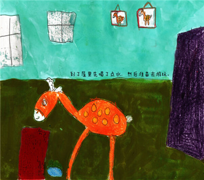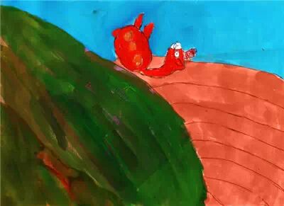 滚到山脚下,还好没有摔伤,它爬起看到前面有棵苹果树。