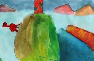 爬到山顶,累了就蹲下来休息,闻着花香,觉得舒服极了。