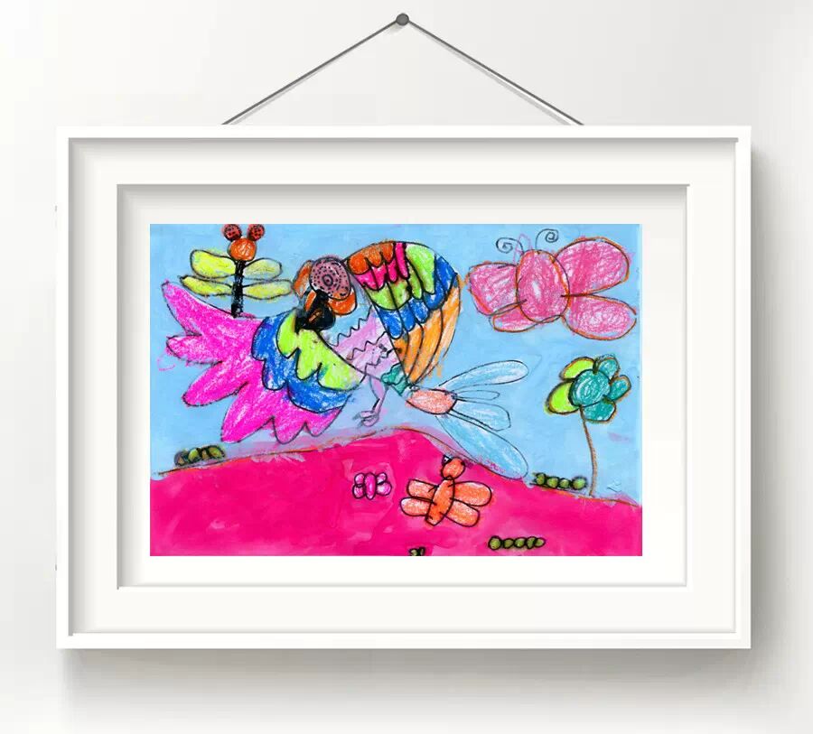 韩孟奇:5岁半,女孩,是在爱的故事里快乐成长起来的孩子,妈妈经常读故事给她听,奇奇很早就认字了,我一开始认识这个乖巧懂事的孩子就喜欢上了她。一年里每次看到奇奇用她的画笔描绘春夏秋冬,花鸟鱼虫都觉得好惊喜,那些明艳的色彩就像画面下过一场彩虹雨,奇奇讲的奇妙的故事就如同是从童话王国的花园里采摘几朵灿烂鲜艳的故事之花,编成一个充满馨香的花篮,送给每一位看到她作品的朋友。