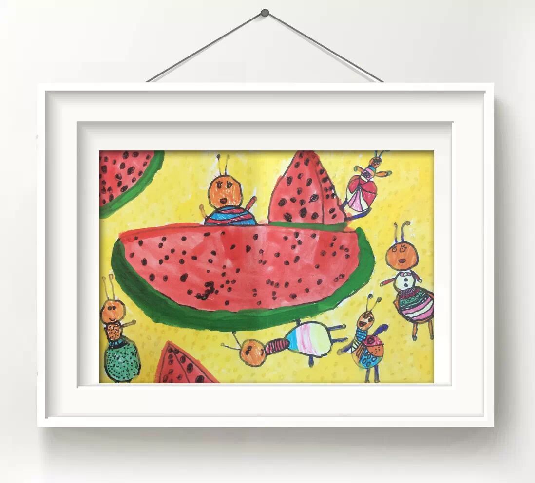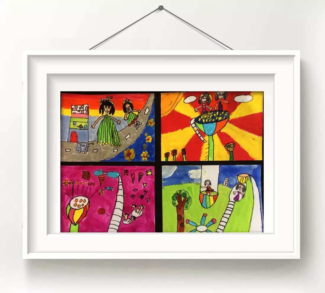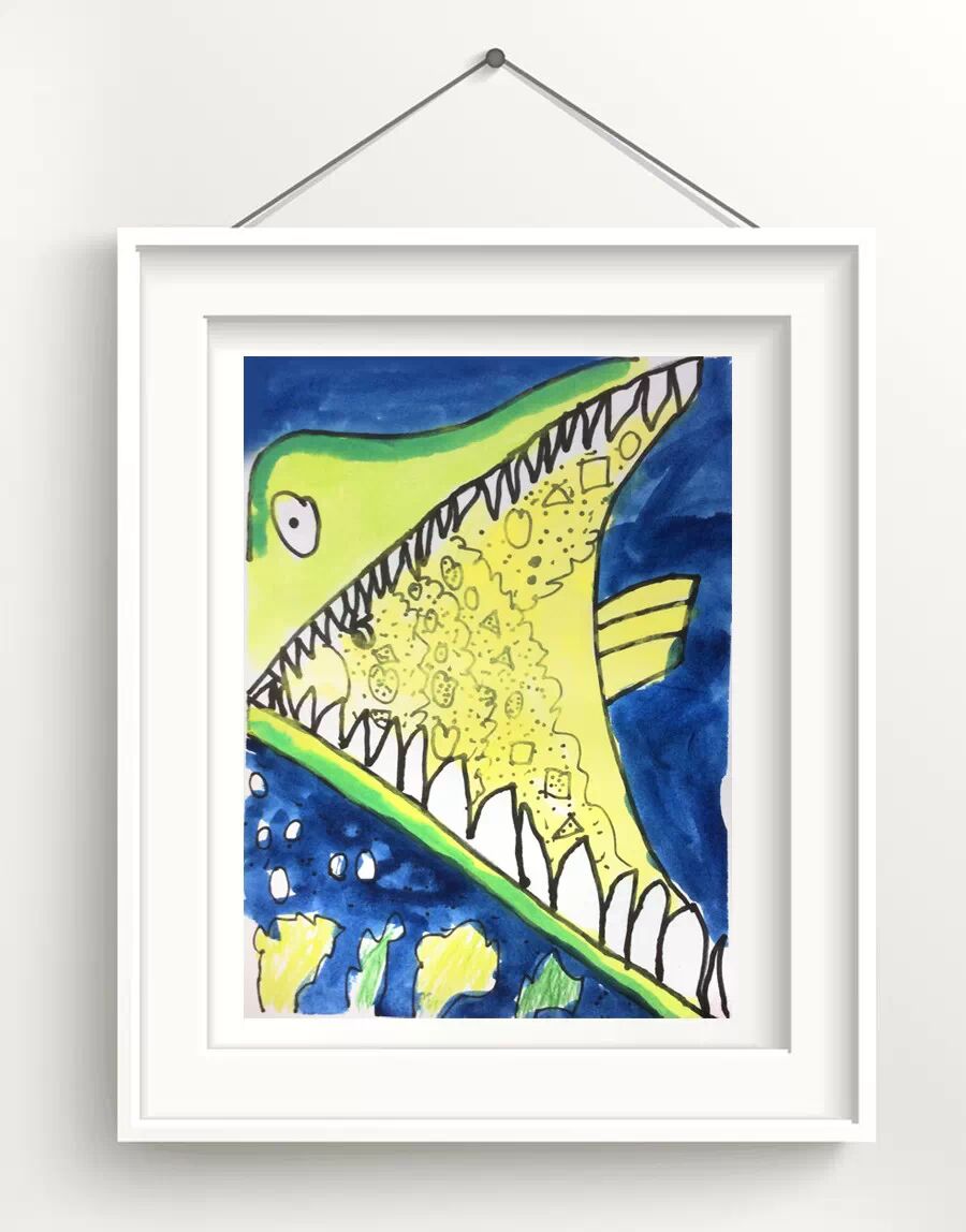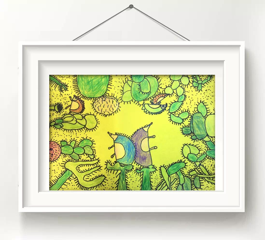 韩京京:京京是一个内敛、腼腆的女孩,虽话语不多但画画认真,线条清晰、干净,简单的色彩拼接成完整的画面,她的画里中充满了各种各样的故事,仿佛所有要说的话语全部寄托在了画面之中。