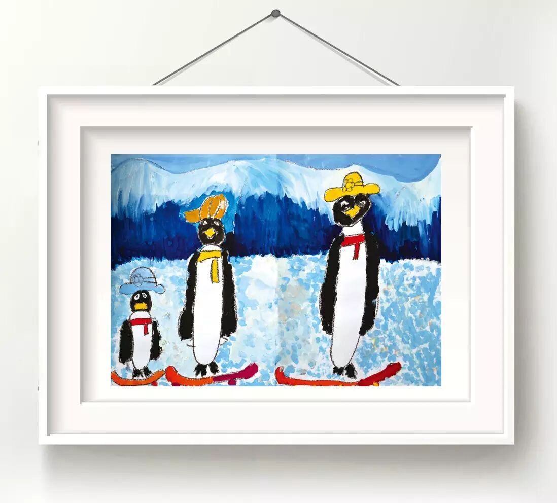 作品名称:《玩滑板的企鹅一家人》