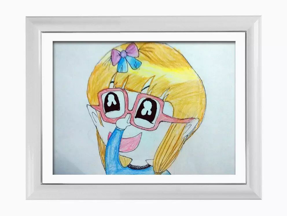 作品说明:有一个小女孩,他出去逛街,他来带了商店,看到了一付眼镜,他非常的喜欢,就戴了起来,他觉得很漂亮,就开心的笑了哦~!