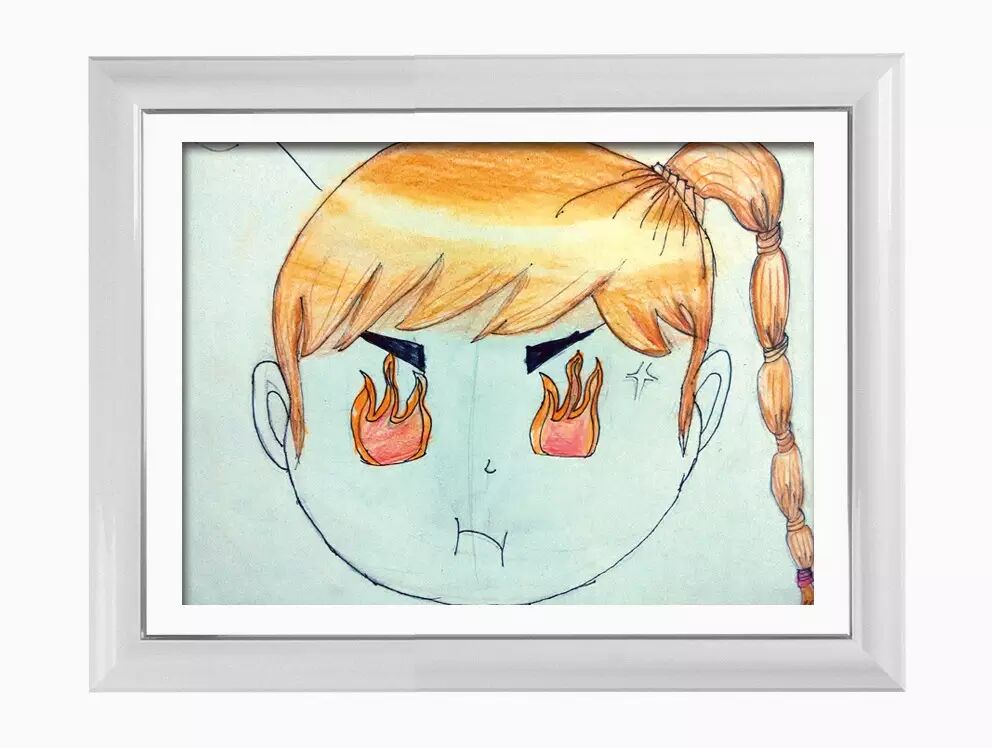 作品说明:我今天画的是一个生气的小女生,给他画了一双冒着火花的眼睛,包子嘴,还有给他画了一个歪辫子哦,并且还给他画了气的的冒烟的效果线。
