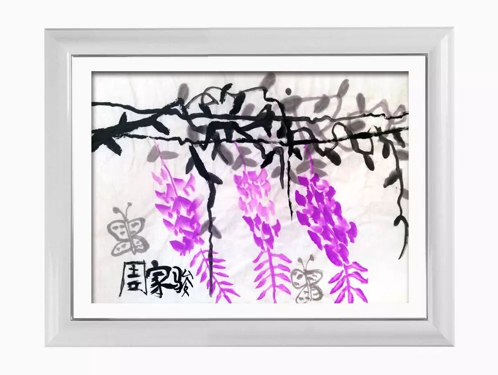 作品说明:从前有一个小孩特别喜欢蝴蝶,就种了紫藤吸引蝴蝶,很开心,吸引来无数的蝴蝶,有天下雨了打雷了,把紫藤都劈死了,很伤心《悲伤的一天》。