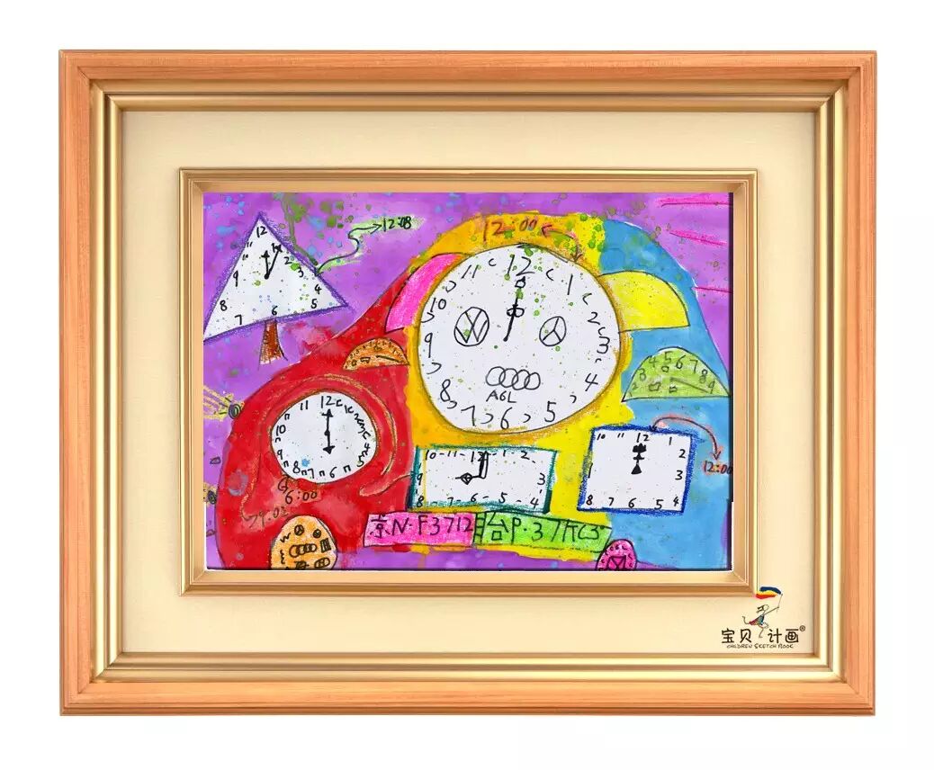 作品名称:《彩虹钟表汽车在森林里行驶》